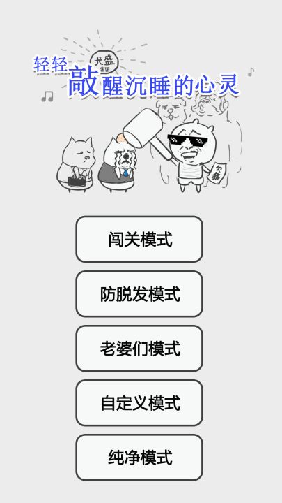 经历无数个不眠的昼夜,作者敲击屏幕的手速已达到炉火纯青的境界,沉睡已久的心灵已然觉醒,在类木鱼游戏的基础上脑洞大开,研发出了多个清新恶趣味的屏幕敲击新玩法: