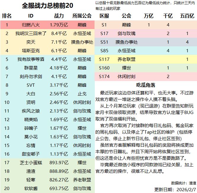 历届前20战力统计和后续更新,可以从社区精华帖子中查看~