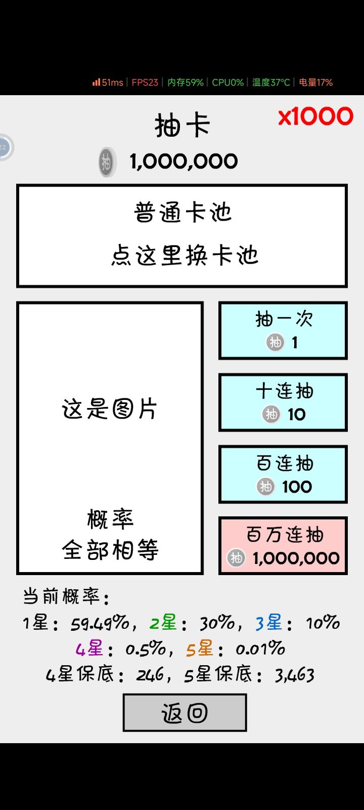 玩法还挺有意思,第一天,1.5万抽,非酋保底