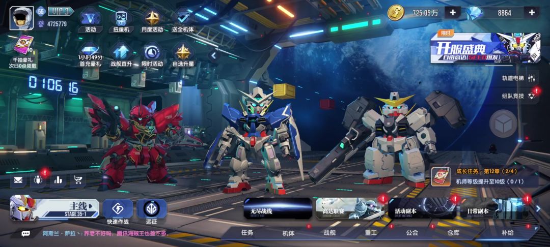 #浅评一下 [表情_微笑]新手入门 • 熟悉机体:了解游戏中6种机体类型(机动、可变、通用等)和5种特性(格斗、浮游炮、火力、突击、辅助),明确其作战定位和克制关系。 • 前期推进:新手指导一路跳过,拿到正义高达后第一时间拉满等级。第三章开始可跳过动画,一路推到第六章卡18级,卡级可领挂机奖励或用快速作战升级。 资源获取 • 主线关卡:前期获取资源的主要渠道,难度低且资源丰富,优先推进主线以获取更