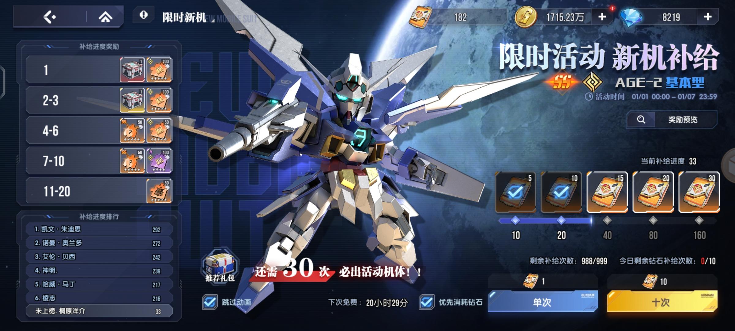 指挥官认证计划:晒面板赢SS机体自选箱!(第三十弹)