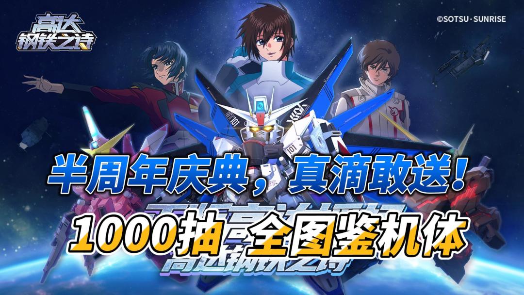 手游厂商的福利也开卷啦!<高达钢铁之诗>半周年庆的福利太顶了! 🎁登录200抽! 🎁加送1000抽! 🎁全图鉴机体直接送! 🎁新手10连无限重置SS机体卡池!