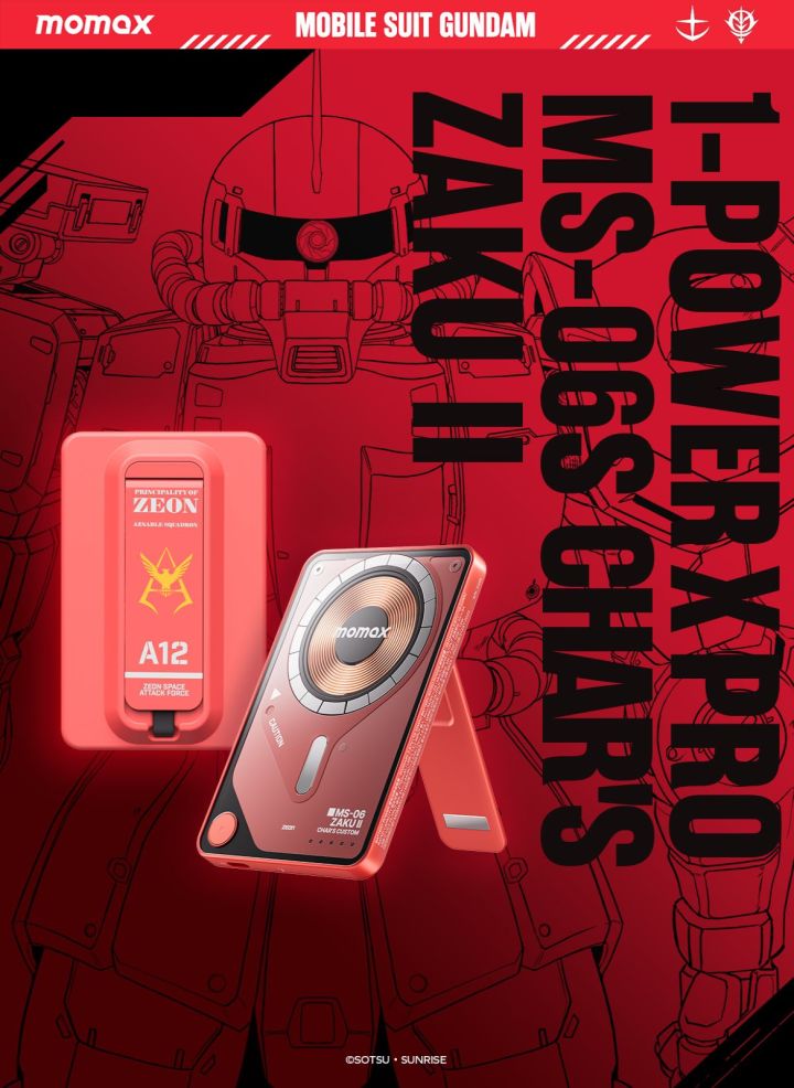 高达钢铁之诗×MOMAX(摩米士)联合献礼!据说吉翁的“赤色彗星”——夏亚的专用机体【夏亚专用扎古】之所以能发挥出其他机体3倍速度的惊人表现,其秘诀就在于强大的能源支持。如今,知名数码配件品牌MOMAX(摩米士)与《机动战士高达》强强联合,推出最新产品,为各位指挥官带来持久的电力支援,为你的出行提供可靠的续航保障!【奖品内容】Momax:1-Power X Pro透明三合一磁电宝-MS-06