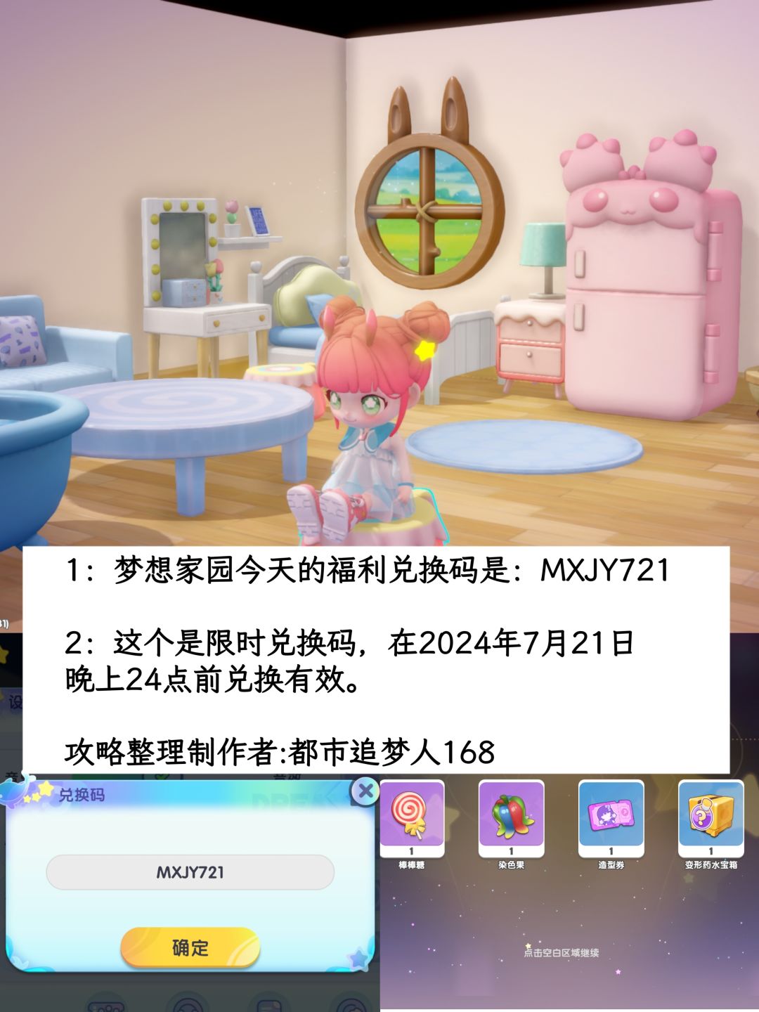 #梦想家园 #泡泡玛特 #游戏安利 #游戏推荐 #游戏资讯 #游戏攻略 1:梦想家园今天的福利兑换码是:MXJY721 2:这个是限时兑换码,在2024年7月21日 晚上24点前兑换有效。 3:图2/3是我的房间布局。 攻略整理制作者:都市追梦人168