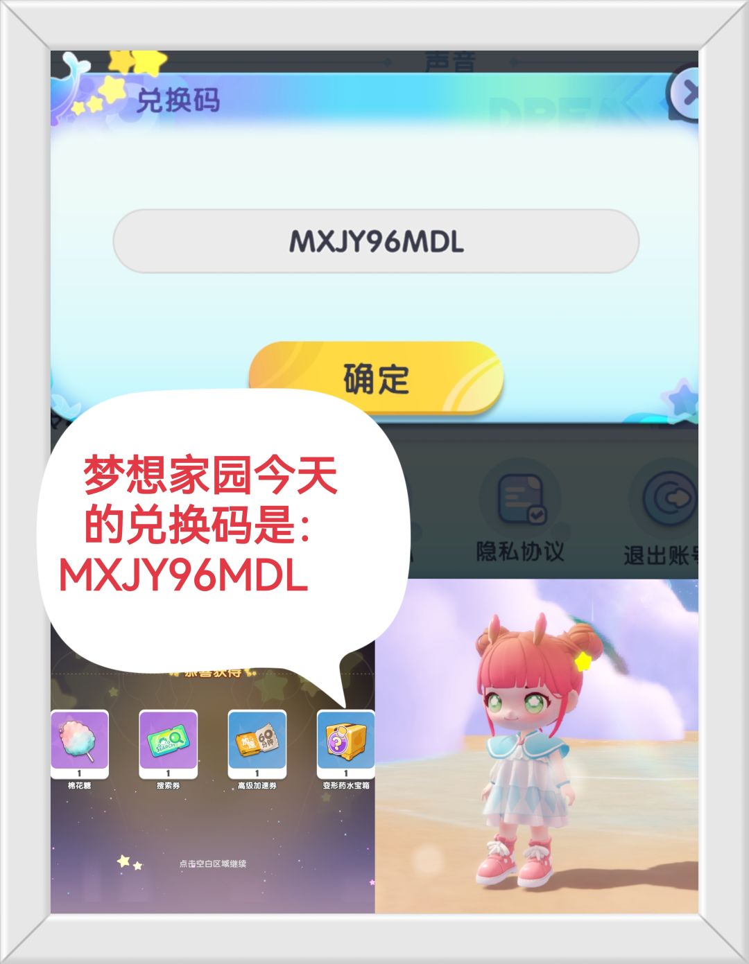 #梦想家园 #泡泡玛特 #游戏种草计划 梦想家园9月6日的福利兑换码是:MXJY96MDL