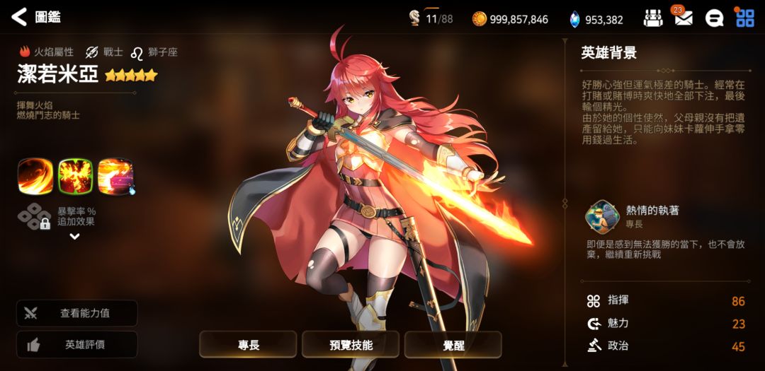 1. 全新英雄「洁若米亚」登场 好胜心强、挥舞著火焰燃烧斗志的骑士5★英雄洁若米亚! 位于阵营的前排提高士兵士气的英雄洁若米亚!现在就试著与她相遇! ■ 洁若米亚 【英雄介绍】 【技能介绍】 2. 新增全新神器「孤注一掷」、「伊杰拉的圣剑」 已新增以下两种神器! 在使用非攻击的技能时,可增加攻击力的战士专用5★神器「孤注一掷」! 以及被菁英、首领怪物攻击时,使自身受到的伤害减少的骑士专用5★神器「