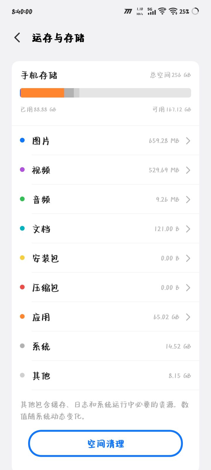 等了好久,终于把快85GB的东西传给另一个有256GB空间的手机上了,传过去后主力手机多了一大半空间用了