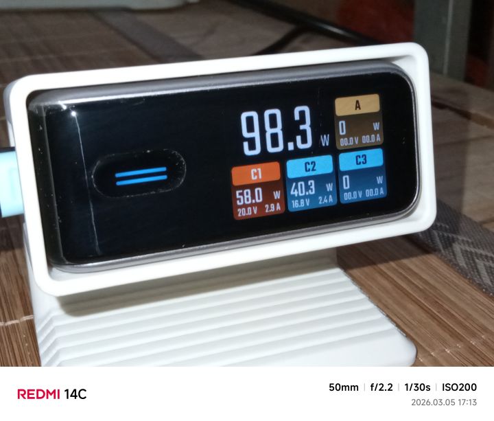 手机和充电宝在两个C口充电,功率居然没有对半分配60W+60W