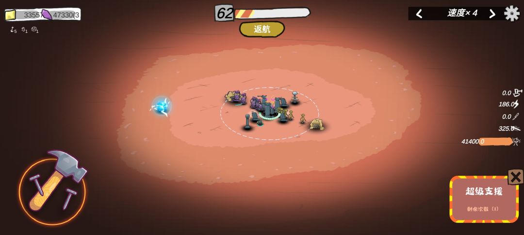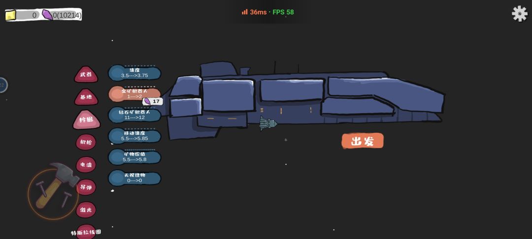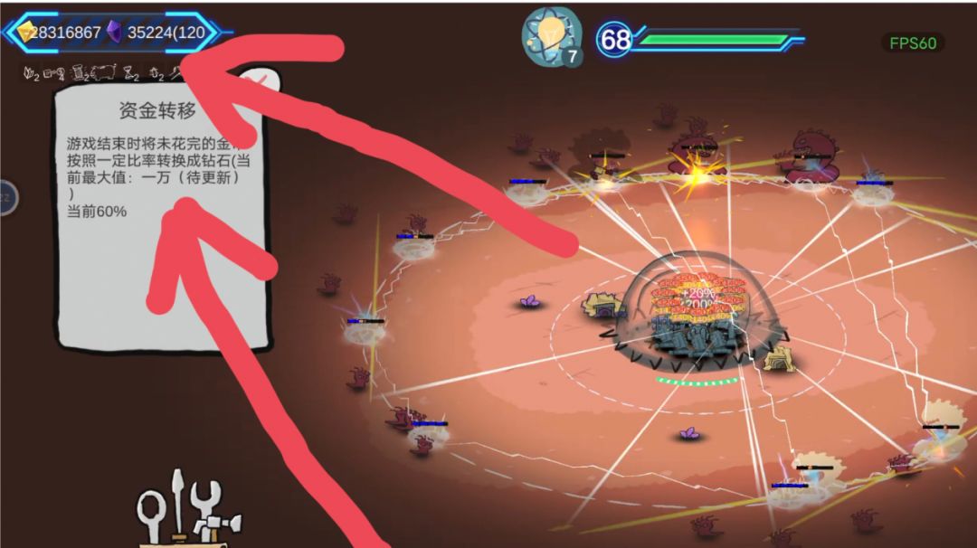 有了钻石回飞船先不急升级武器,直接屯一波升级钻石机器人数量