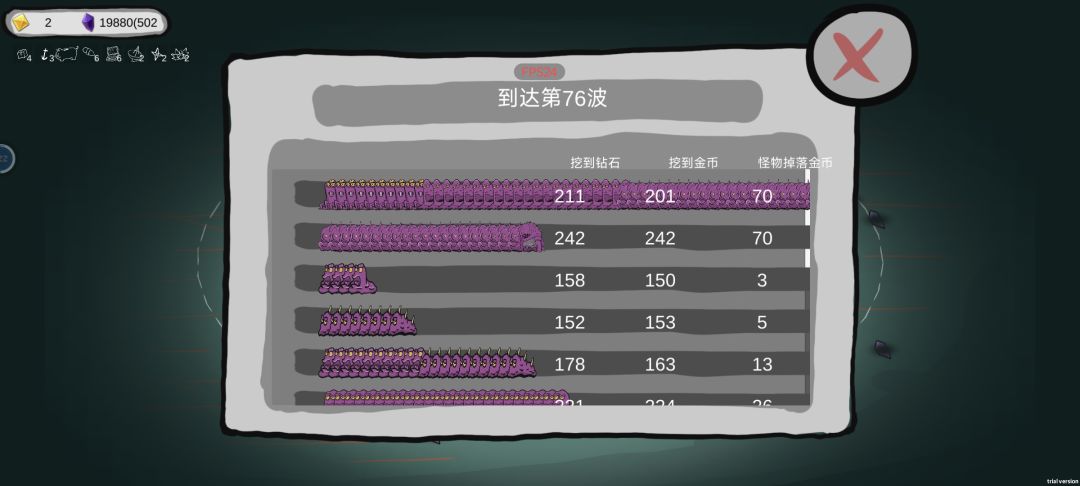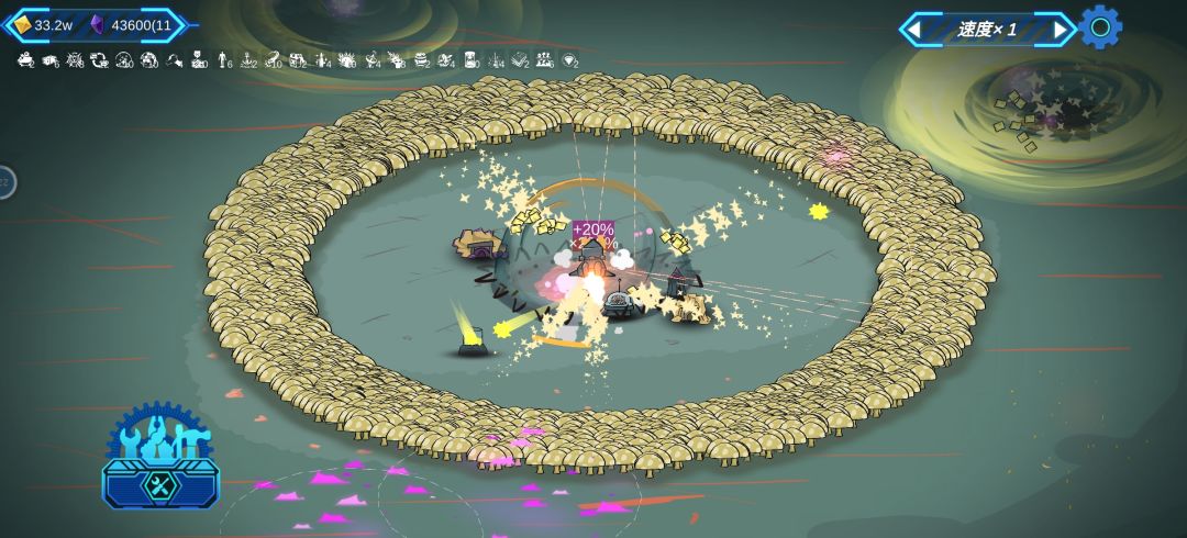 非常简单的技巧,不追求高关的可以跳过 这个游戏基本就是数据堆叠,所以增益buff都是单纯的数字相加,所以可以随便达到100%及以上生命斩杀,关键就在于选巨锚。 但是90波后就是纯粹的重复了,可能有小增强但是我没看出来。 对新手的技巧建议: 前期先攒个特斯拉,直接点无视怪物,就可以解放双手了。 附上截图证明下