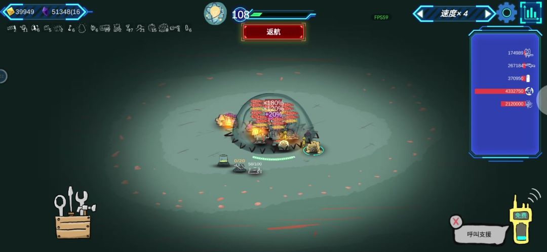 开局前喷火器点满,然后刷补给需求层数减一,到55层专心堆蘑菇,要是你手机配置好几千关都能过