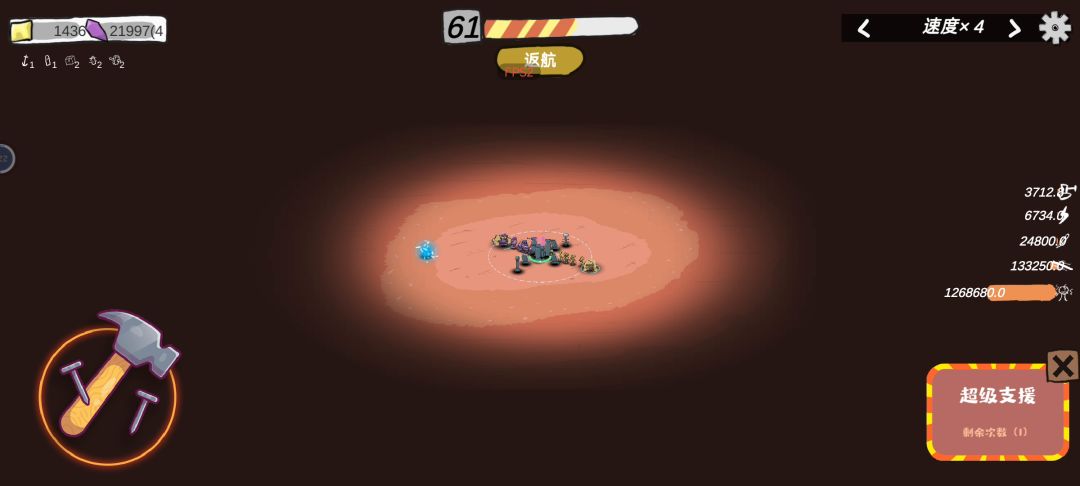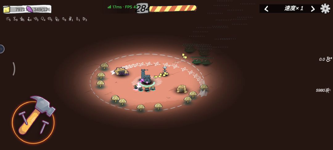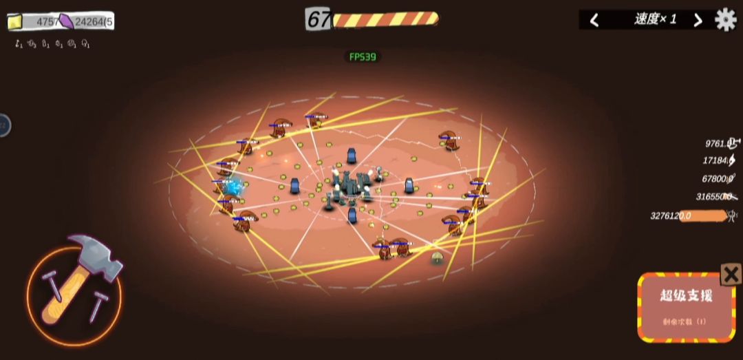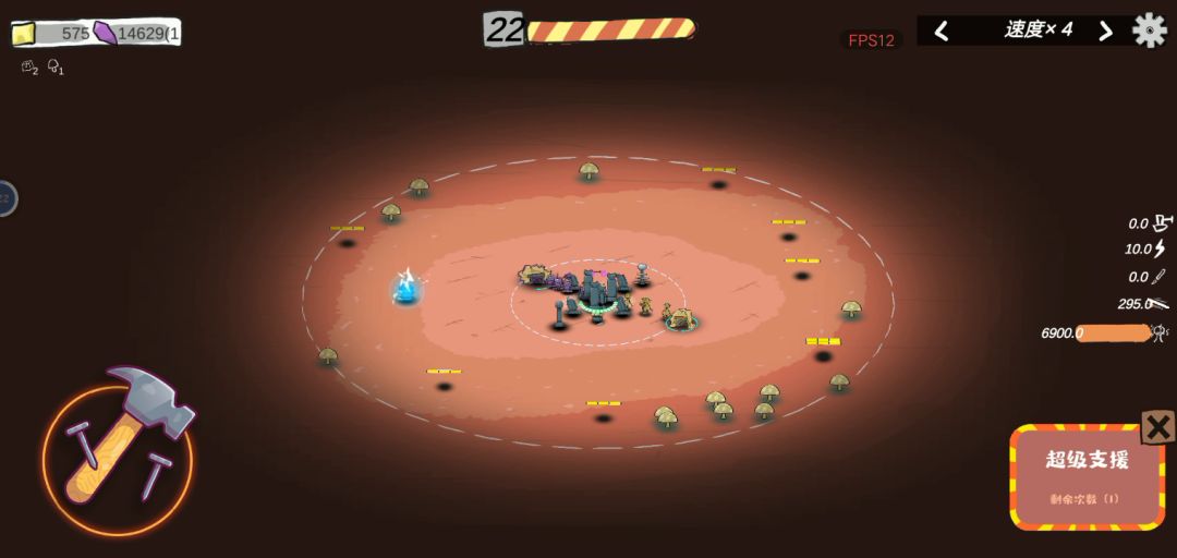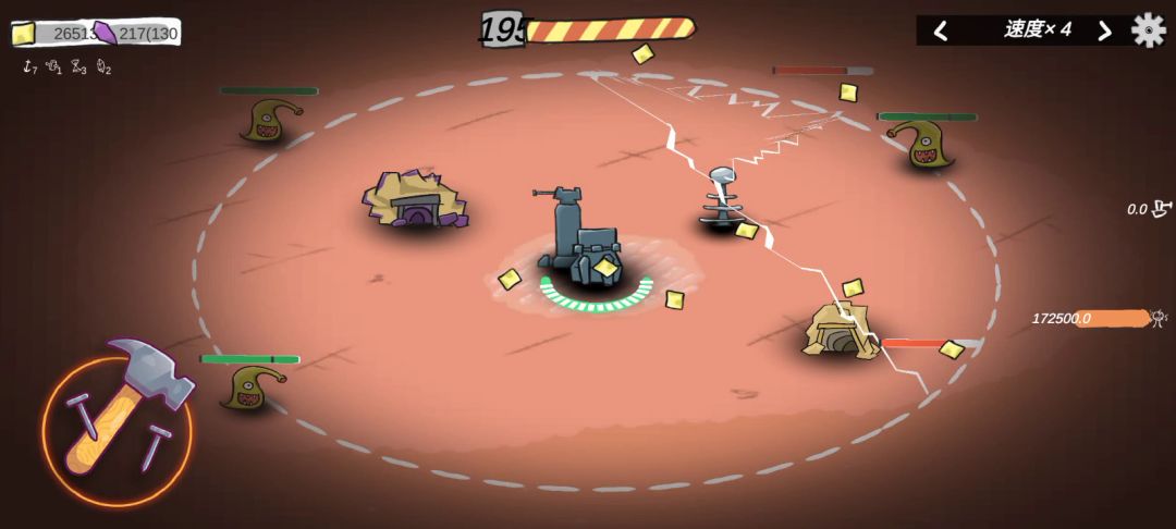 武器只把最后一个线圈点满,挖矿一个都不点,基地也全不点 特别是跳过波数,血量啥的点不点都无所谓,然后就是菜菜给的道具攒5个巨锚,就可以一直挂着了,小怪根本摸不到你