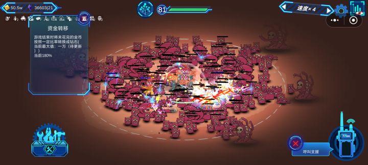 我发现攻略比较少就稍微写写1.前期优先升级机器人是肯定的,升级机器人之间顺带把补给选择和宝石保留升满,基地血量和回复也可也在空隙中升级毕竟也不贵,机器人先点前几个在保证可以打过45关点出资产翻倍之后再点后面的机器人 武器点满前3个之后往下看2.回归正题,天赋加点看图,补给中最为重要是巨锚(斩杀),巨锚在70关以后就刷新不到了所以我们要保证在70之前刷到最多的巨锚3.55关之前的补给中前3下