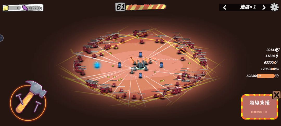 所有的都升级满了以后,再回去打,就会卡成这个样子,大家切记不要升满级