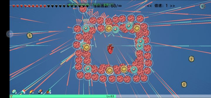 放置“良性细胞”炮台后可,可随意拖动来快速消灭病菌,前期提供可操作的乐趣,中后期转变为放置,算是两开花吧!