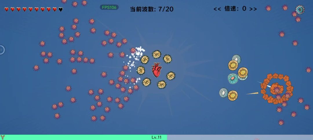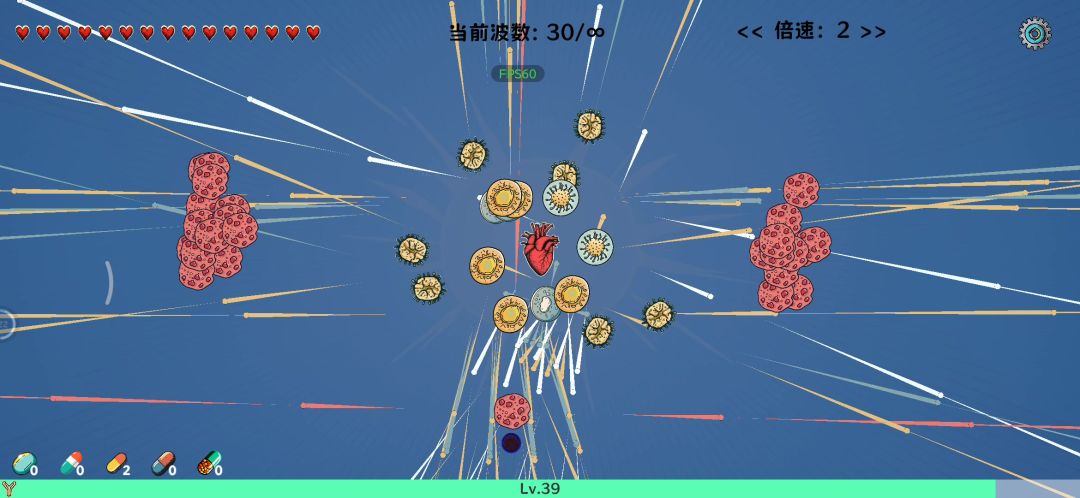 这这款游戏的无尽模式,会随着波数的增加,无限加强这些微生物每一次,在现基础上增强30%,成指数级上升。主要加强他们的移动速度和生命值。