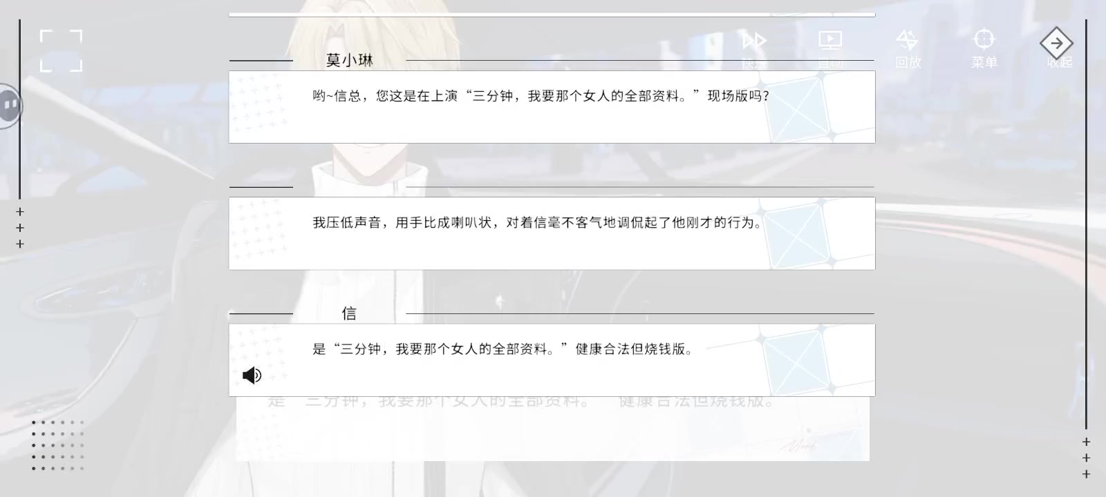 过完了信个人线!信全结局get! 过完信的剧情不禁和景发出如出一辙的感慨:这小子到底怎么活到这么大的……冲动,冒失,坚定,却又恰到好处的柔情似水,隐藏在年少有为的青年总裁下的,是永远热烈而炽热的少年。 玩儿之前看到很多人说信的感情线突兀,自己玩儿时发现……确实挺快的。一句我爱你真给我整懵了,后来才发现真是一见钟情。好吧,也许这就是你信吧,还挺符合人设的。 比起讲信修睦,我倒是觉得这个名字更像
