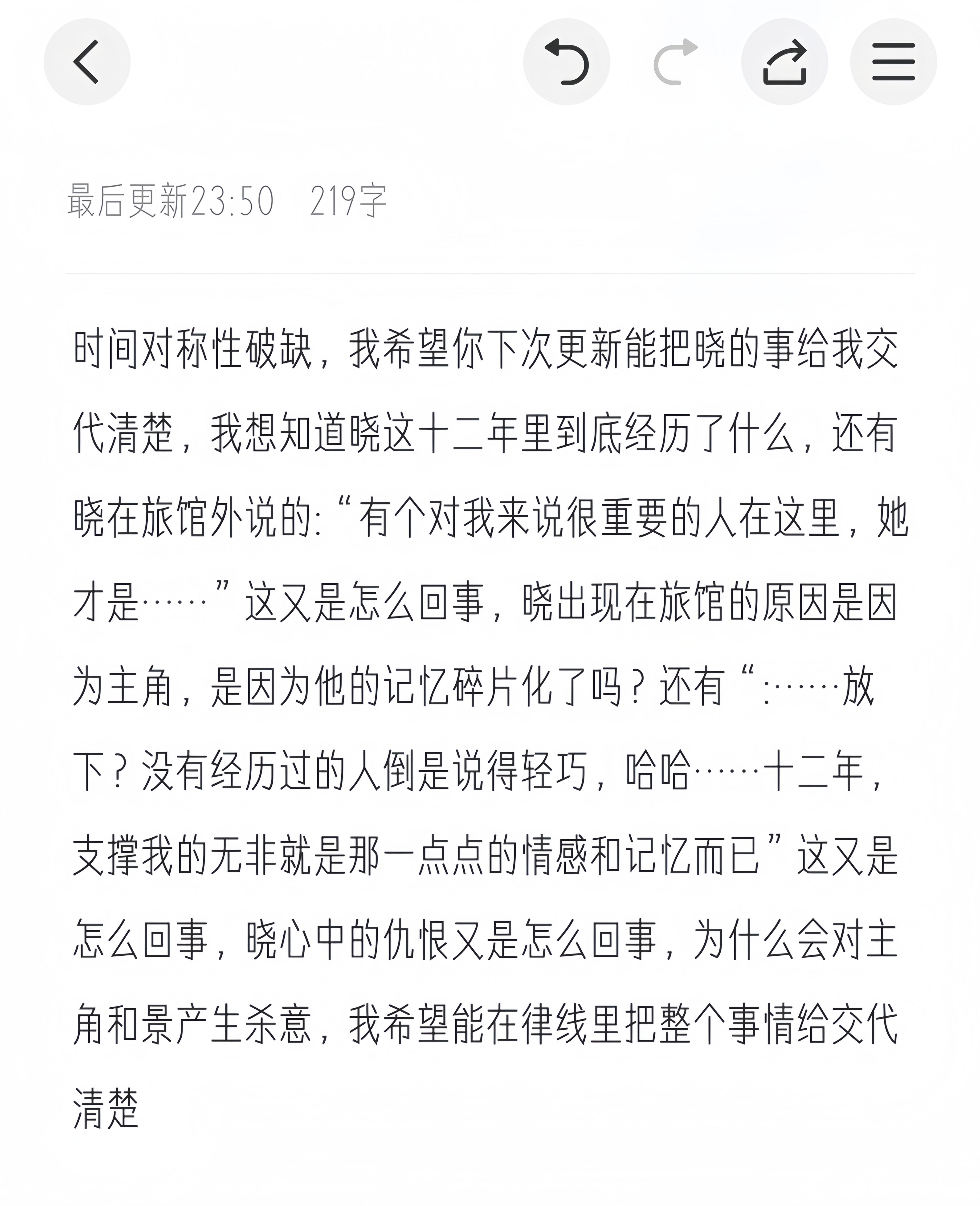 #时间对称性破缺 #枫线 #含剧透打开慎重 刚过了枫线简单说一下我的看法和疑点吧:后续剧情——①接第三次回溯去到枫家有人来了,来的人不认识一直敲门,从猫眼里看带着鸭舌帽脸上有胡须看不清容貌,大概十分钟后就离开了。他离开后“我”又继续观看墙上的照片在照片了找到了烬(绿色眼睛),是报道上十二年前杀了枫父亲的人,已伏法。可是在十二年前入室抢劫的是红色眼睛,所以说凶手不只烬,或者说烬只是替罪羊(个人