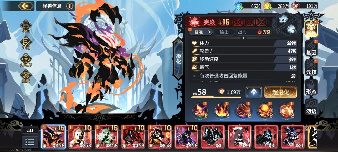 作者:悠久之第二树 阵容:剑焱崩魅地 1.剑 基因:小基因120体,大基因100霸 极化:破则,爆裂,恒战,影子,霸气 元核:体力核 词条:满体,满增,极致,其次负面 宿命:重生 怪兽定位:副坦,buff增益,高霸击退 2.焱 基因:小基因60真伤,大基因100移速 极化:破则,爆裂,真伤,濒危,激发,反噬 元核:真伤核 词条:满增,满极致,起源攻,其次负面/破甲 宿命:重生 怪兽 定位:高速承伤