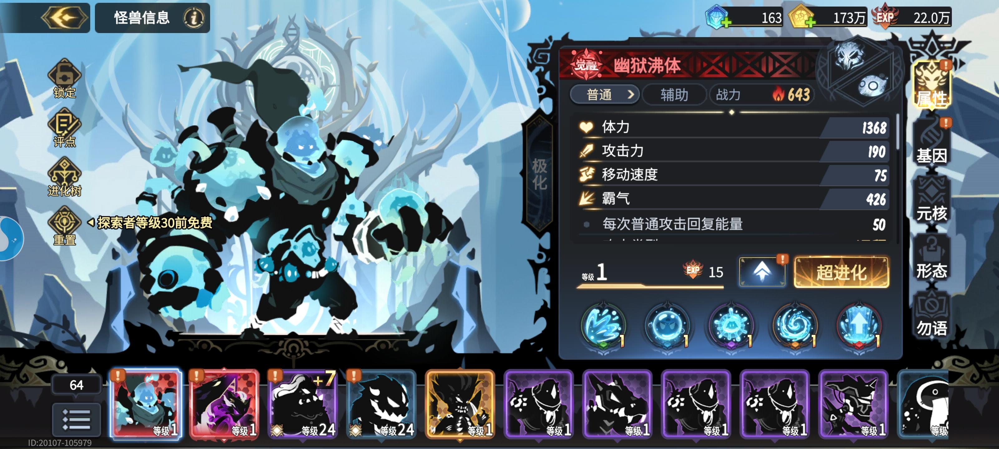 「初号铸体」2.7版本新怪,已经出来有一段时间了,它的出现已经对当前的环境对战环境造成了比较大的影响,出现了不少的配队,以下是对其简单的介绍以及养成建议。 「初号铸体」(星灵族+木偶族),定位[肉盾] ,攻击方式:“远程”。 「初号铸体」是一个十足的数值怪,初始的霸气体型非常不错,且作为肉盾,她的体力成长也也十分合格。该怪兽十分的吃养成,除基础的一技能外,2345技能都有非常高的等级收益,每