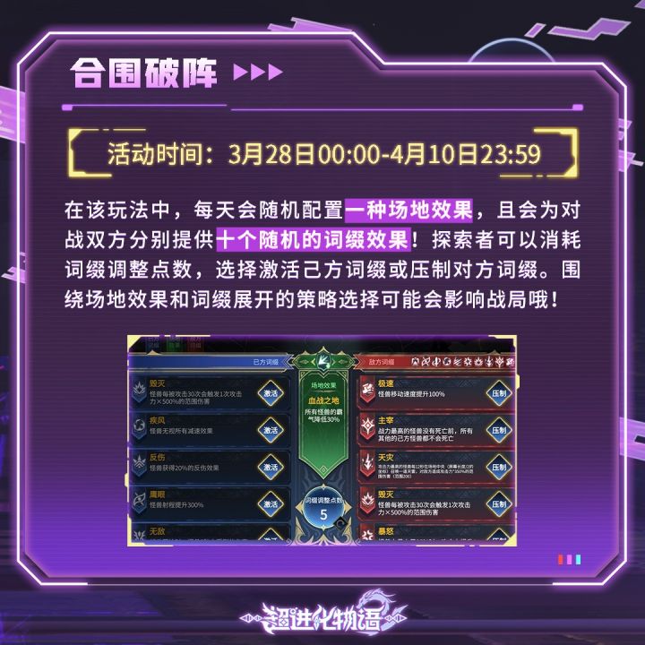 探索者,是时候展现真正的技术了!「合围破阵」活动将于明天(3月28日)开启!快来左右夹击强敌,在有限时间内打出更爆炸的伤害吧!更多「合围破阵」玩法介绍,探索者请看:https://www.taptap.cn/moment/495008507783807910#游戏安利#游戏推荐#游戏讨论#游戏资讯#超进化物语2