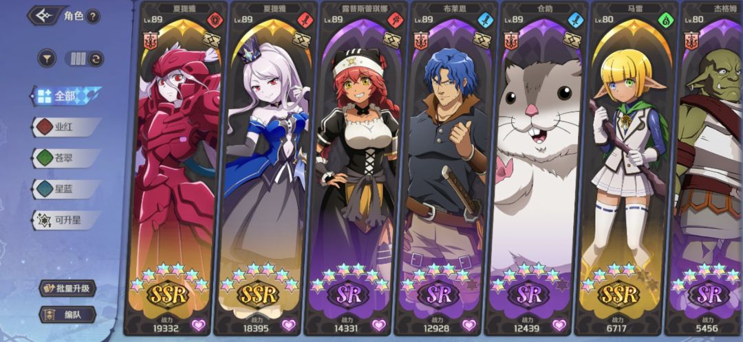 阵容双夏,指甲刀,狼妹。主打一个后手 藏品,战夏,给攻击评分高的攻击套 盾夏,双防,减伤,生命的白银套 指甲刀,冠军套,保证不死加反击增益 狼妹,断火套,堆生命,抗性 竞技场挂机,难遇敌手,89级随便打90多级的 灼烧队,追击队,三保一,基本上都是笑话#游戏安利#游戏讨论#游戏资讯#攻略#游戏攻略