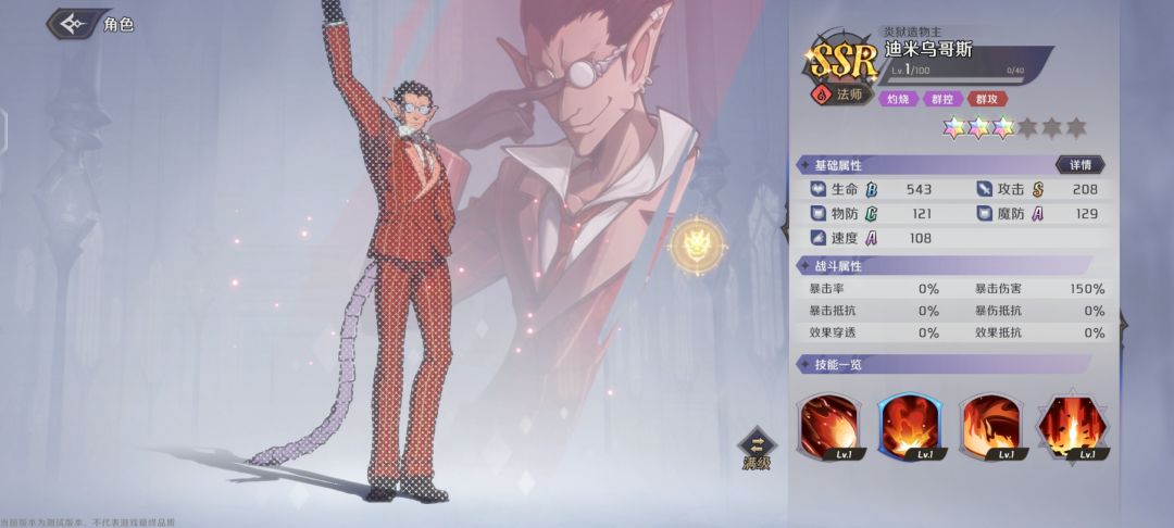 迪米乌哥斯,纳萨力克地下大坟墓第七层的守护者,在游戏中化身灼烧流法师,拥有狂暴的输出能力,无论是前期还是后期,都足以承担队伍的核心输出角色。本期内容为大家带来的就是迪米乌哥斯的角色评测。 目录 一、角色定位 二、技能介绍 三、技能评价 四、关键星级 五、技能升级 六、私藏品推荐 七、配队推荐 八、弧光推荐 角色定位 迪米乌哥斯,SSR级卡牌,职业为法师,拥有着十分优秀的群体输出能力,在灼烧环境下迪