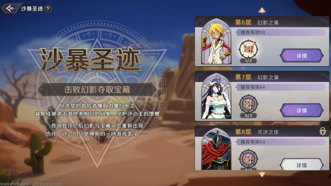 沙暴遗迹副本,是《纳萨力克之王》中的挑战副本,类似于爬塔玩法,可以产出大量的养成道具,包括但不限于魔导晶块、高品质藏品、藏品养成道具、金币等,是至尊们养成藏品、提高练度的重要副本。今天为大家带来的就是沙暴遗迹的攻略。 目录 一、沙暴遗迹副本简介 二、副本玩法攻略 三、Boss挑战攻略 四、阵容推荐 沙暴遗迹副本简介 沙暴遗迹是一种爬塔类型的副本,目前共开放18层,每一层包括普通和困难两种难度选择,