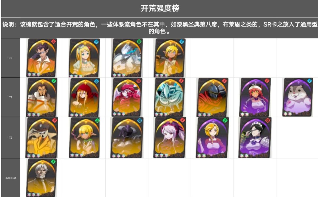 本次攻略为开荒阵容的攻略,因此不会包含所有的角色,会列出统一的强度榜,属于开荒系列,不涉及后续的强度。 目录 一、角色梯度榜单 二、练了必不会亏系列 三、新手开荒阵容推荐 一、角色梯度榜单。 二、练了不会亏角色 这个榜单包括了性价比比较高的角色,练的话不会亏,因为该游戏的角色重置等级需要用到道具。 1.输出位 T0 迪米乌哥斯 目前成本最低的成型阵容,原本一测情况不太良好,但是二测的时候有了专武的
