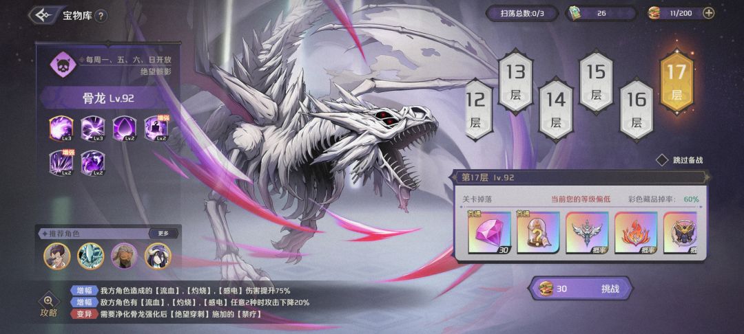 话不多说,话都在我前两个帖子说完了,大家有兴趣可以去看看! 骨龙(目前我用不到,可以过度用) 骨龙机制就是放普通技能时会给它自己叠法强,吐息的时候伤害爆高还眩晕,但是会被灼烧的触发削掉,所以我大灼烧队发威了 阵容小迪+白雅+盾夏(骑士)+公主(狼妹),只要队友抗住奶量足,随便打 火源素(终结,群星套,热门追击套) 火源素机制是半血或者多少回合后可以把一个己方人员关小黑屋,优先关盾,13层后