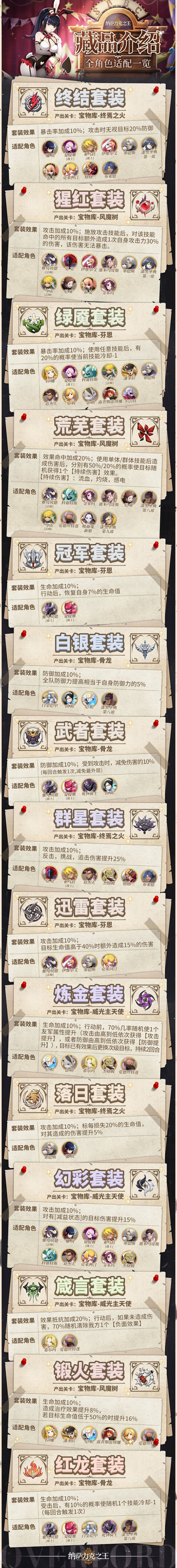 庄严肃穆的大厅,一如既往的寂静,无数令人趋之若鹜的藏品诞生于此。至尊大人在获取这些宝藏之前,不妨先翻阅一下纳萨力克档案哦~>>>藏品资料已解锁今天为大家带来的是【藏品介绍】全角色适配一览,还请各位至尊大人查阅>>>预约地址:官方Q群: 官方QQ五群:816608432官方QQ六群:127074062官方QQ七群:894415375