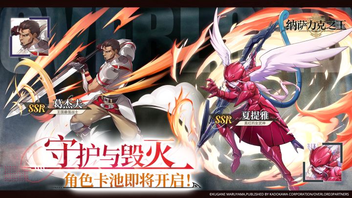 限时角色UP卡池——【守护与毁灭】&专属弧光UP卡池——【忠诚与反叛】即将同步开启! >> 开启时间:2024年9月5日 10:00:00 - 2024年9月19日 05:00:00> 活动期间,SSR角色【王国最强战士 葛杰夫】&【真红的女武神 夏提雅】,召唤概率大幅提升,至尊大人可前往【守护与毁灭】角色卡池进行召唤。> 活动期间,SSR角色【王国最强战士 葛杰夫】专属弧光【敌情当前】&【