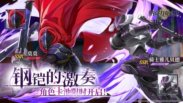 限时角色UP卡池——【钢铠的激奏】&专属弧光UP卡池——【敌人歼灭之时】即将同步开启!>> 开启时间:2024年11月21日10:00 - 2024年12月5日05:00> 活动期间,SSR角色【漆黑的守护者 雅儿贝德】,SSR角色【漆黑英雄 莫莫】,召唤概率大幅提升,至尊大人可前往【钢铠的激奏】角色卡池进行召唤> 活动期间,SSR角色【漆黑的守护者 雅儿贝德】专属弧光【漆黑之盾】,SSR角