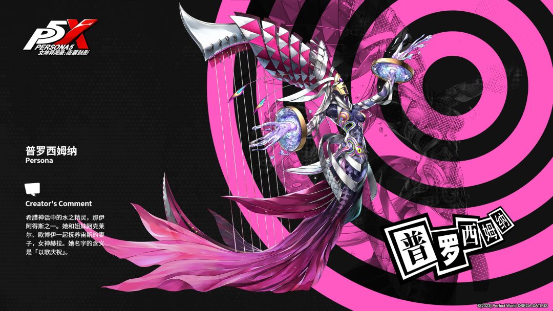 >>>PERSONA! 『普罗西姆纳』介绍 希腊神话中的水之精灵,那伊阿得斯之一。 她和姐妹阿克莱尔、欧博伊一起抚养宙斯的妻子,女神赫拉。 她名字的含义是“以歌庆祝”。 ————觉醒,面具之下的你!———— //《女神异闻录:夜幕魅影》预约正在进行! 点击下方标签即可预约>>> 【更多福利欢迎关注】 官方微博: 官方微信:女神异闻录 夜慕魅影 官方③群: 官方⑤群:#女神异闻录夜幕魅影#P5X#游戏安利