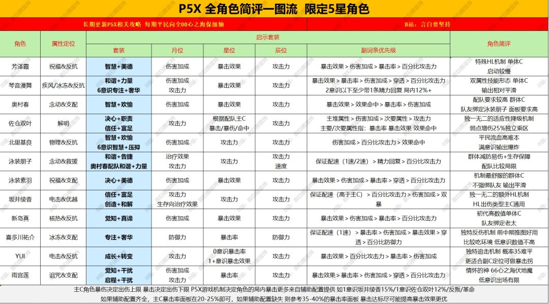 截止4.0版本全角色启示养成一图流更新 偏向稳定领域心之海属性搭配 仅做个人选择的抛砖引玉,非权威,非专业 #p5x #女神异闻录夜幕魅影