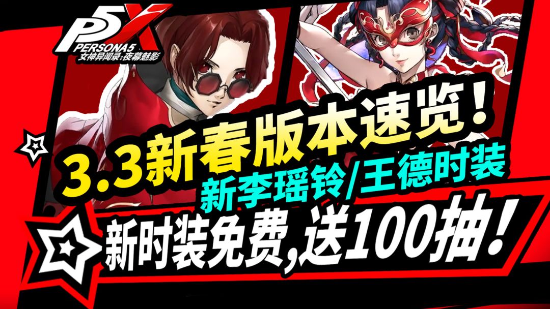 【P5X】3.3新年版本更新前瞻:王德新时装免费,新春李瑶铃送100抽!