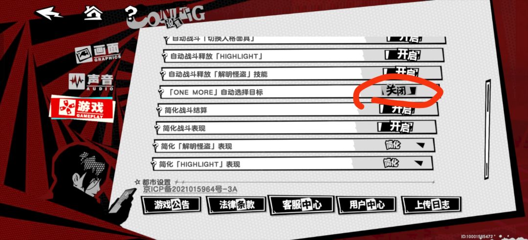 #p5x #女神异闻录夜幕魅影 视频在阿b 同名 抄轴第一步,很重要 打开设置-游戏-ONE MORE自动选择目标关闭(图1 这期心之海的上半配队百花齐放 我在摸轴的时候尝试多种组合 最终给出芳泽霞的平民轴 换手weak伤害不足优先考虑角色面板攻击或者解明攻击 现在的心之海出分非常卡配置了,能放平心态 七八横跳很轻松,适度游戏,别硬凹没必要