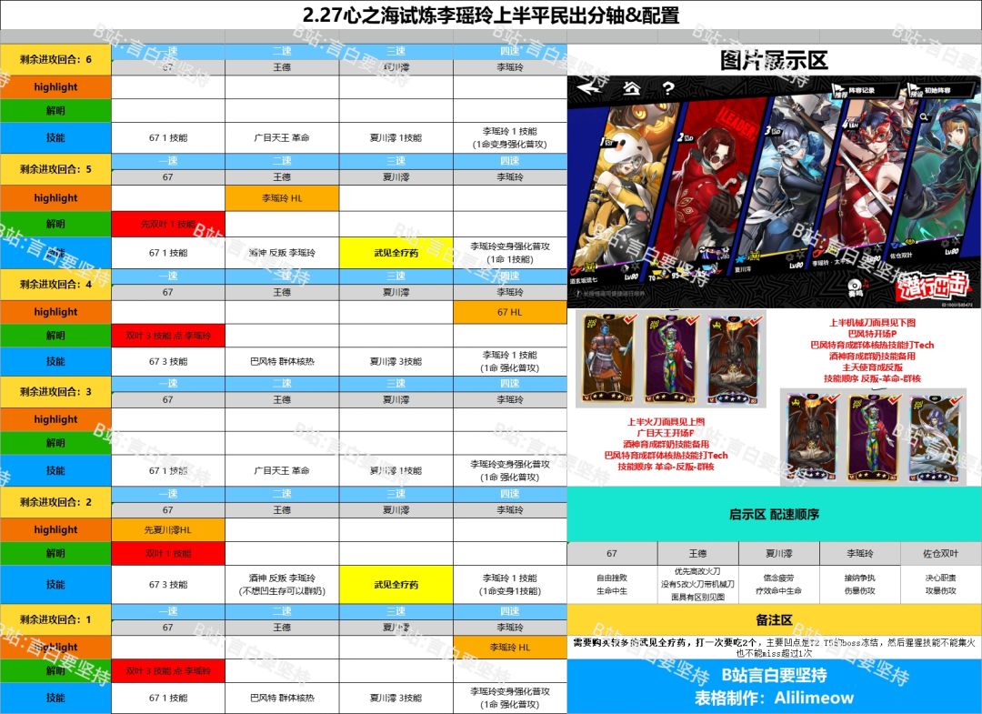 P5X3.4.2心之海试炼平民轴表格版