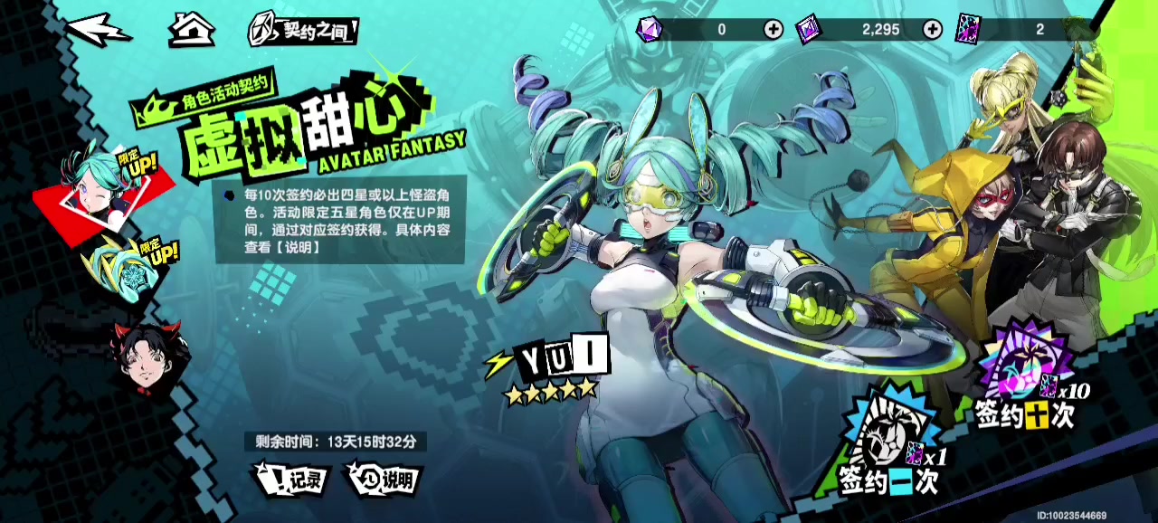 JOKER已不再,来不及可惜了,接下来登场的是: 【虚拟甜心】 “所谓「梦想」,简单来说,就像是播种和收获……” 限定怪盗偶像【YUI】、限定武器【虚拟干扰者】限时上线。 谜之少女出击,与同伴共同进攻,对敌人不断地发起猛烈攻势!#女神异闻录夜幕魅影创作征集令#攻略#游戏安利#游戏推荐#游戏讨论#游戏福利