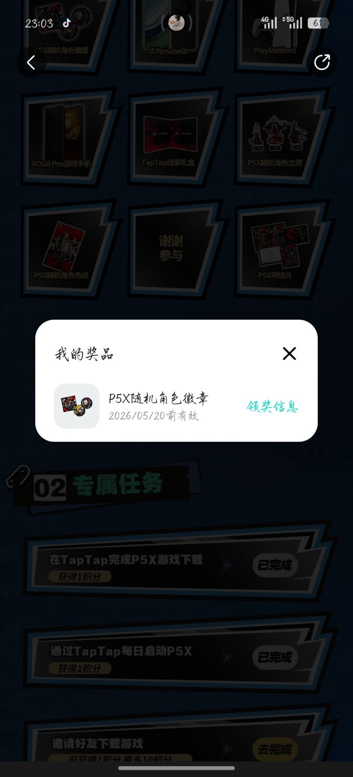 记录一下第一次抽中游戏实体奖励嘿嘿第一抽就抽到了