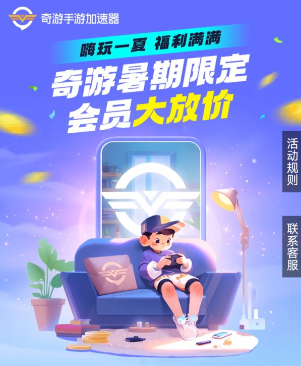 奇游暑期限定活动已经开启啦!限时好价低至2毛! 还有好运盲盒,百分百中奖哦! 感兴趣的小伙伴不要错过啦~ 一、活动时间: 6月21日-7月31日; 二、会员折扣活动规则: 1、本页面展示的会员套餐为限时折扣价,除新人特惠月卡外,折扣套餐不限购买次数,购买后不支持退款; 2、通过其他渠道购买会员套餐的用户,我们不予退差价,请留意官方活动; 3、新人特惠月卡仅限新用户购买; 4、该会员仅支持移动端加速