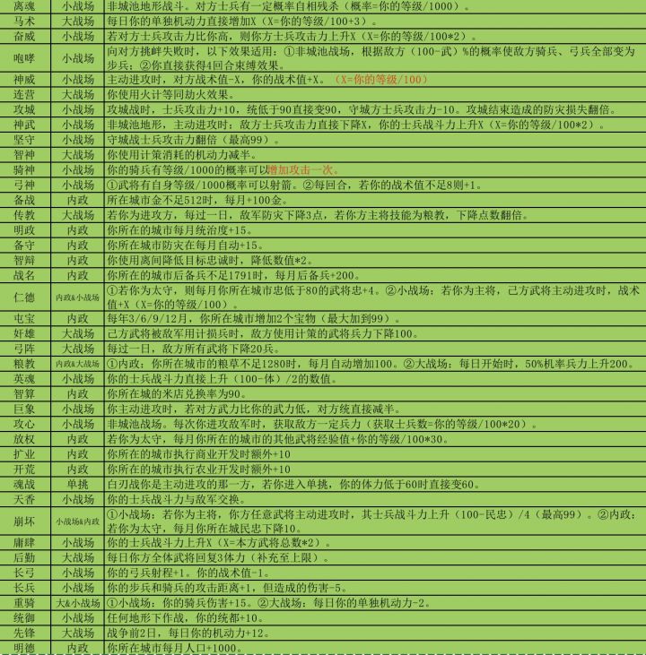 已实现技能列表