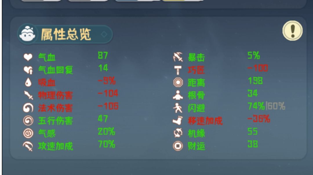 ①首先要明白一点,除了巧匠,所有输出属性对小师妹都没有加成。 因此,其他所有属性都可为负数。(物理打箱子有点用,抽的装备给的就够了) ②因为输出只有巧匠,很难打死很多怪,这样就没钱没经验,所以前期靠机缘开箱子,以及财运那点钱就很重要。 但不能太高,后面会解释。 要注意,箱子很难打死,因此,随到箱子致命一击是最好的。 (注意箱子致命一击是白色词条,因此机缘比较低的时候,概率更高) ③防御属性,根骨>