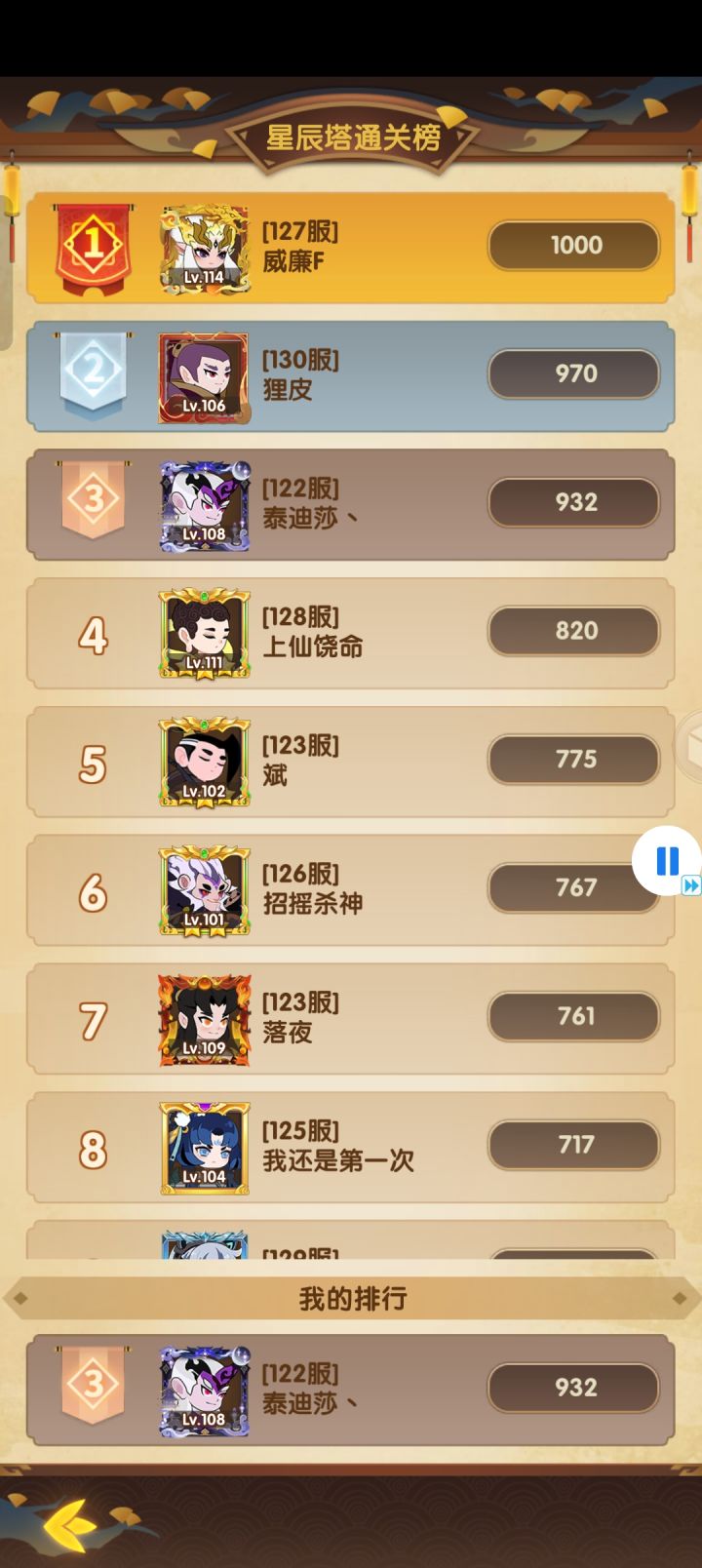 算了,懒得解释了,直接发个排行榜把,因为没经过排行榜里面的人的同意,也懒得一个一个问所以直接打码了,排行榜里面有好几个是养文殊准提的有1个是养龙吉的,第三名的是大佬养的准提不过可能弃坑10来天了我也没太注意,开区的时候确实一个比一个猛,不过后面全被我反超了,他们是不是钞能力玩家我不知道,不过我是冲了一个永久卡。~这个游戏35图左右是一个弃坑点,好多开区7天以后继续玩下去的人大多数都在35图左右