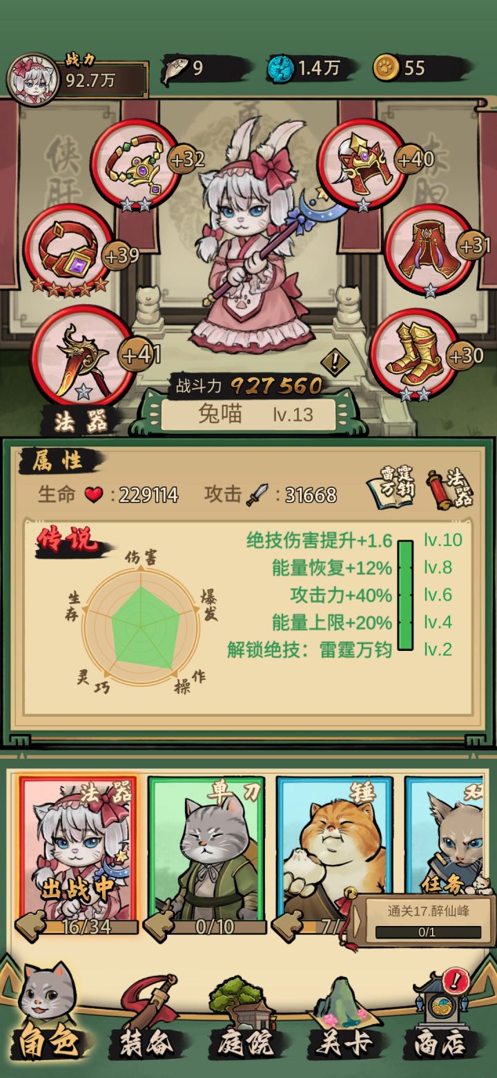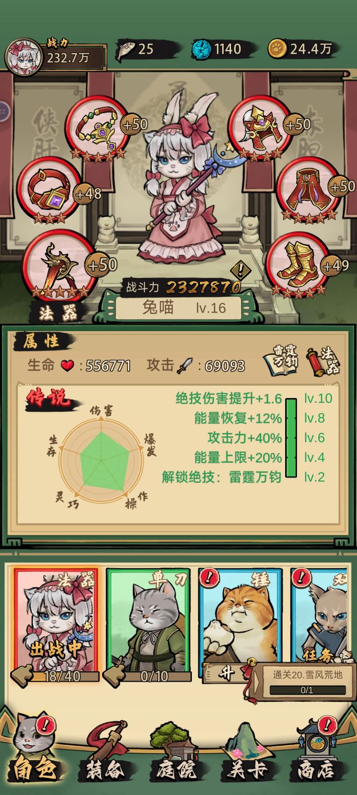 内容玩法上和传统肉鸽割草无差,更偏向单机向的《纸上弹兵》,特效技能偏花里胡哨,游戏中比较独特的再用了猫作为主人公设计(《纸上弹兵》是火柴人),且不再是陀螺仪移动,而是类似《切了个切》那种切割式直线移动。