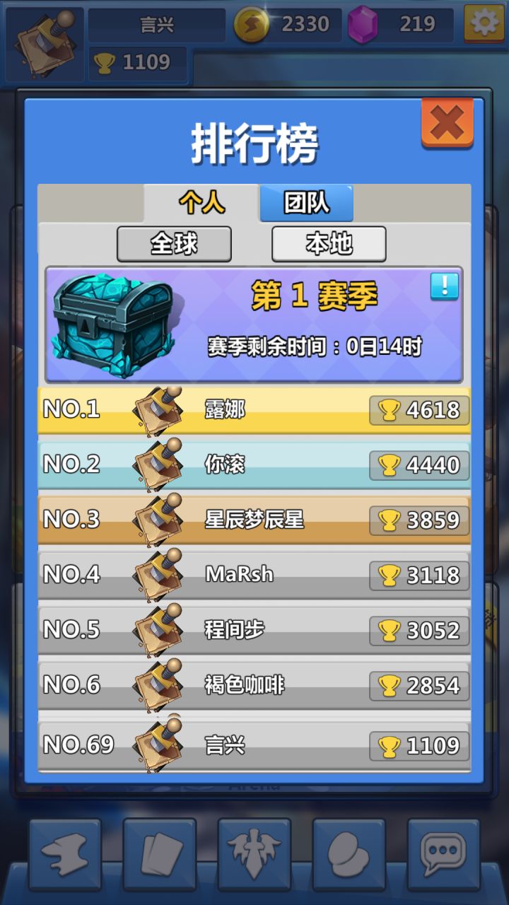 把你游戏名字发给群里的大王,周一让她去找下:(目前我们登陆其实是继承的,可能点到重新登录了,那个会清除数据,不过我还是建议您使用自己的账号,这次测试我们每晚会发1500宝石,正式上线后只要您记得自己注册的用户名,还会获得先行者的勋章和宝箱