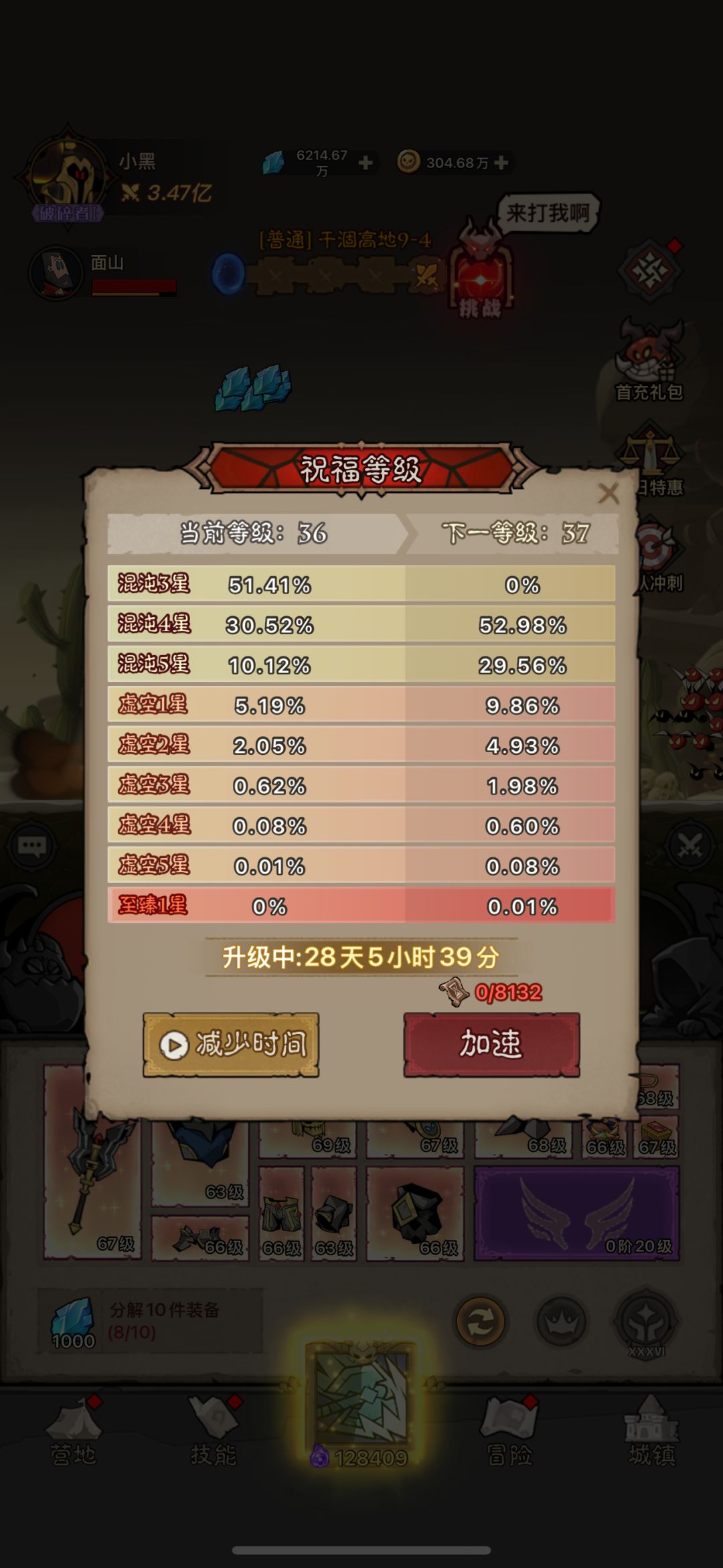 哈喽喽宝子们,阿姒来了呦有一段时间没见了吧,哎第一是因为被兽渊伤了心,还有一个原因是公务员考试二选一岗位最后选的岗位差了一分另一个多了20分所以摆烂了,心情郁闷了几天。虽然我没有更新但是有在玩呦~猜猜我多少了 关于活动:魔道入侵(老规矩用的天雷竹,我这次不参加这个活动,因为准备囤到下一次换灵根,基本整整一周以上拉满才有机会换到,尽量打黄色宗主,四倍符是可以留住的但是打完后的积分他是不留的还是需要换