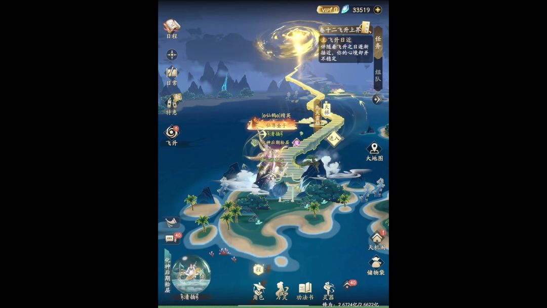不是本人的号,家族里二哥的号,我暂管。 修为经验足够爬梯的情况下,当天游历、每日副本、首领、灵兽副本、灵塔飞升后做任务。#游戏讨论