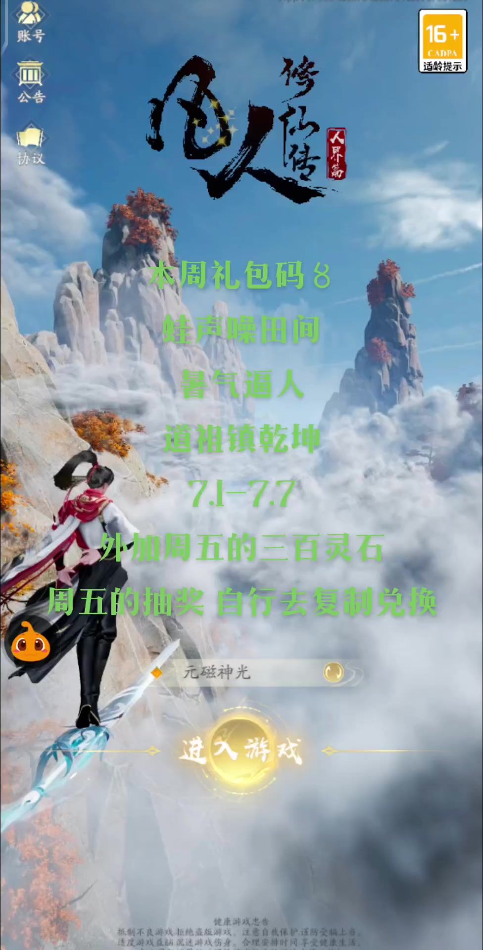 本周礼包码〥 修仙启程 碧水丹山 荷风送香