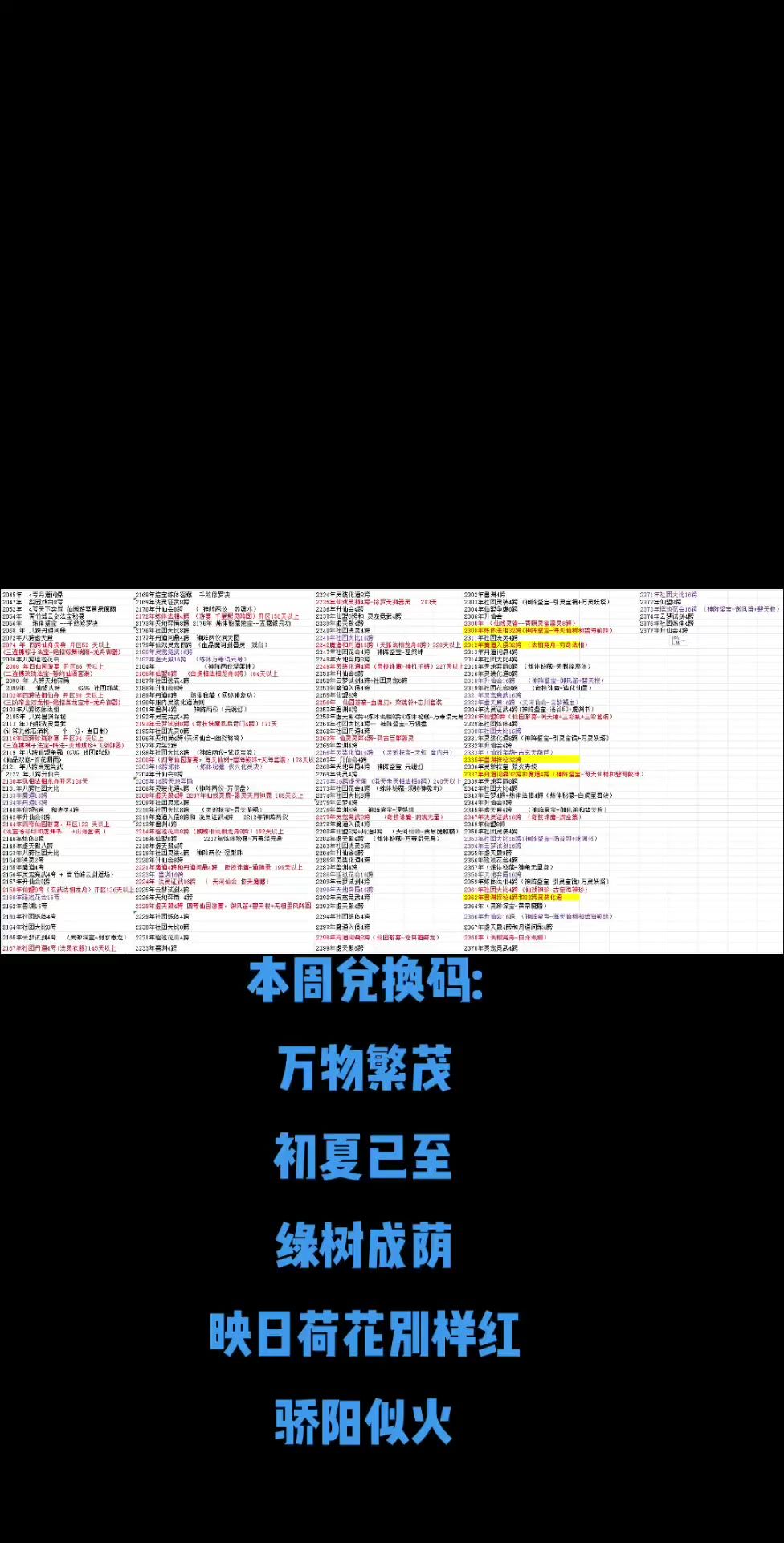 本周礼包码 ✦ 听取蛙声一片 满城绿意浓 悠悠夏日长 炎炎夏日 江河渐满#游戏日常碎片#攻略#游戏福利#游戏攻略#福利